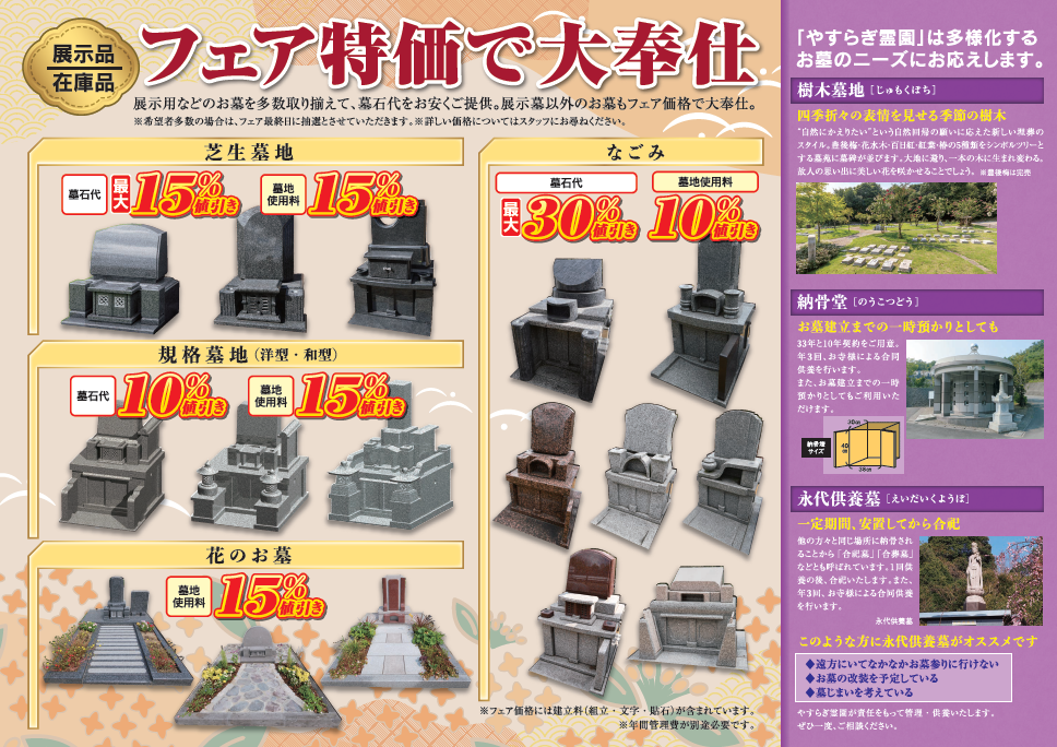9月23日(秋分の日)10時より お寺様による合同供養を執り行います。 納骨堂 → 永代供養墓 → 樹木墓